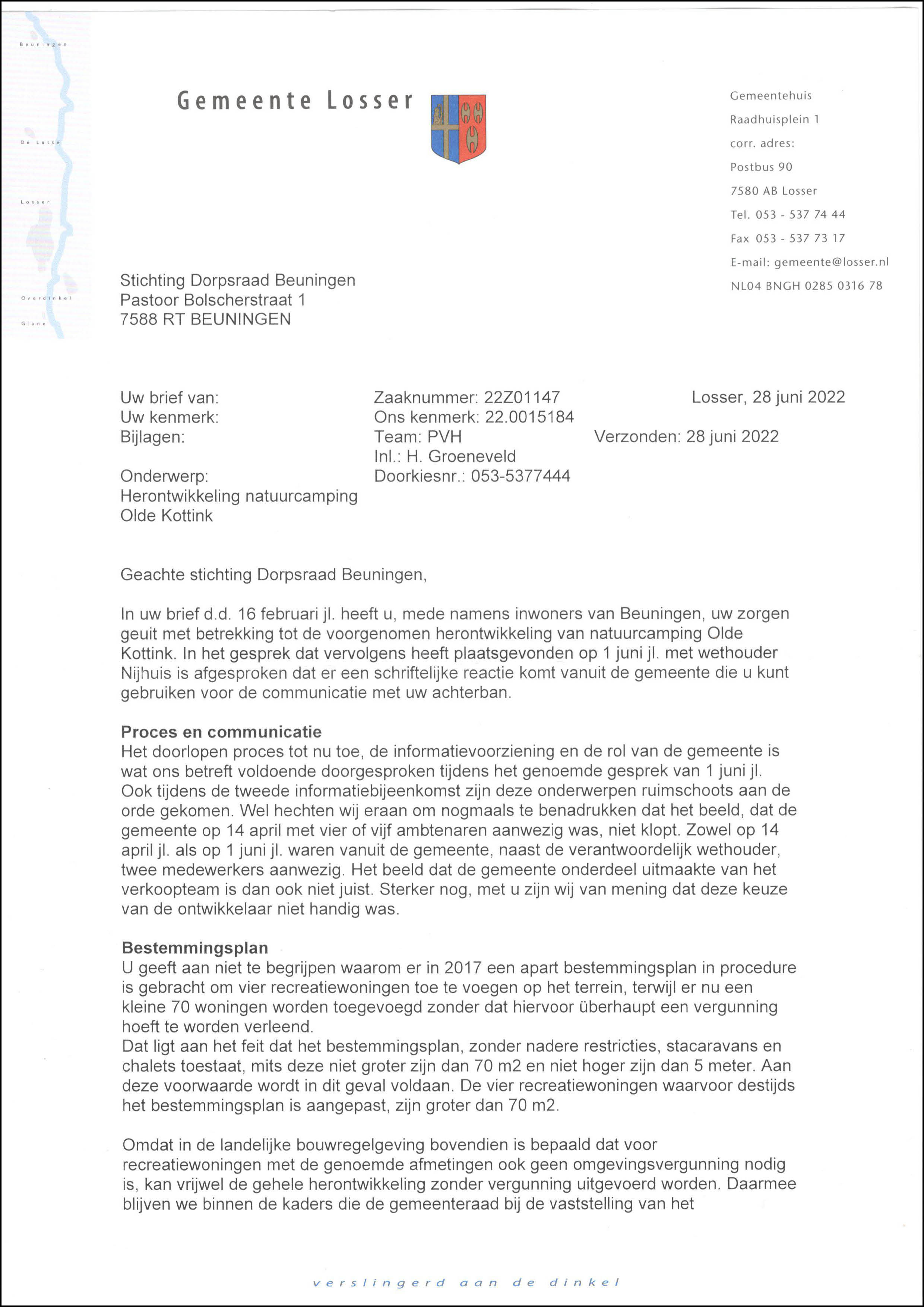 Klik op onderstaande antwoordbrief van de gemeente om de gehele brief van 28 juni 2022 te lezen: